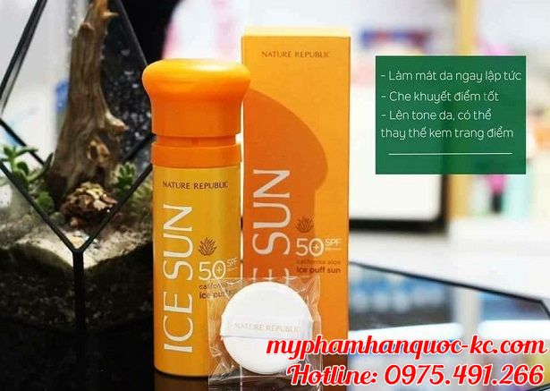 - Kem chống nắng Nature Republic Ice Sun SPF50 vừa làm kem lót trang điểm giúp lên tone da trắng hồng, vừa làm kem che khuyết điểm, vô cùng tiện dụng